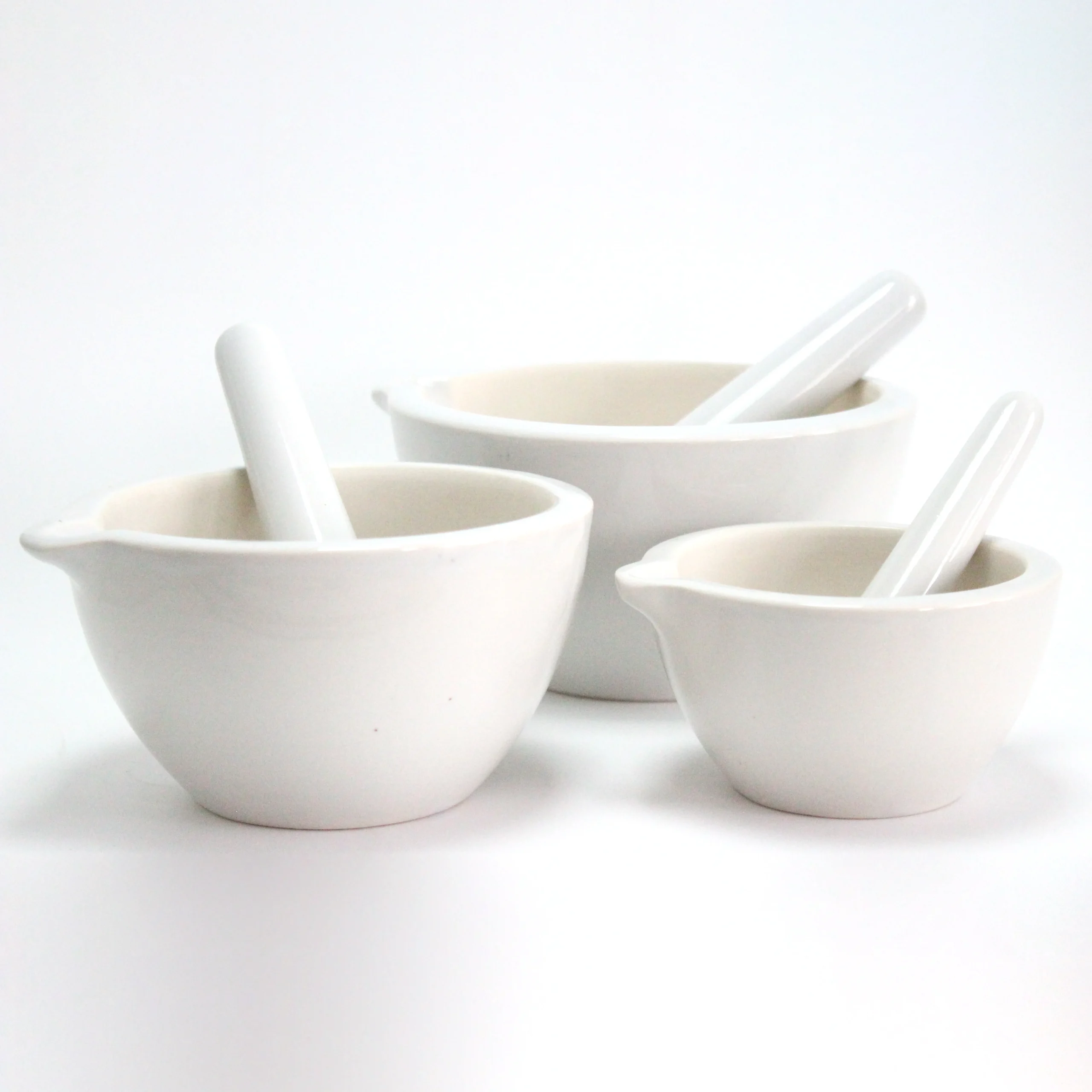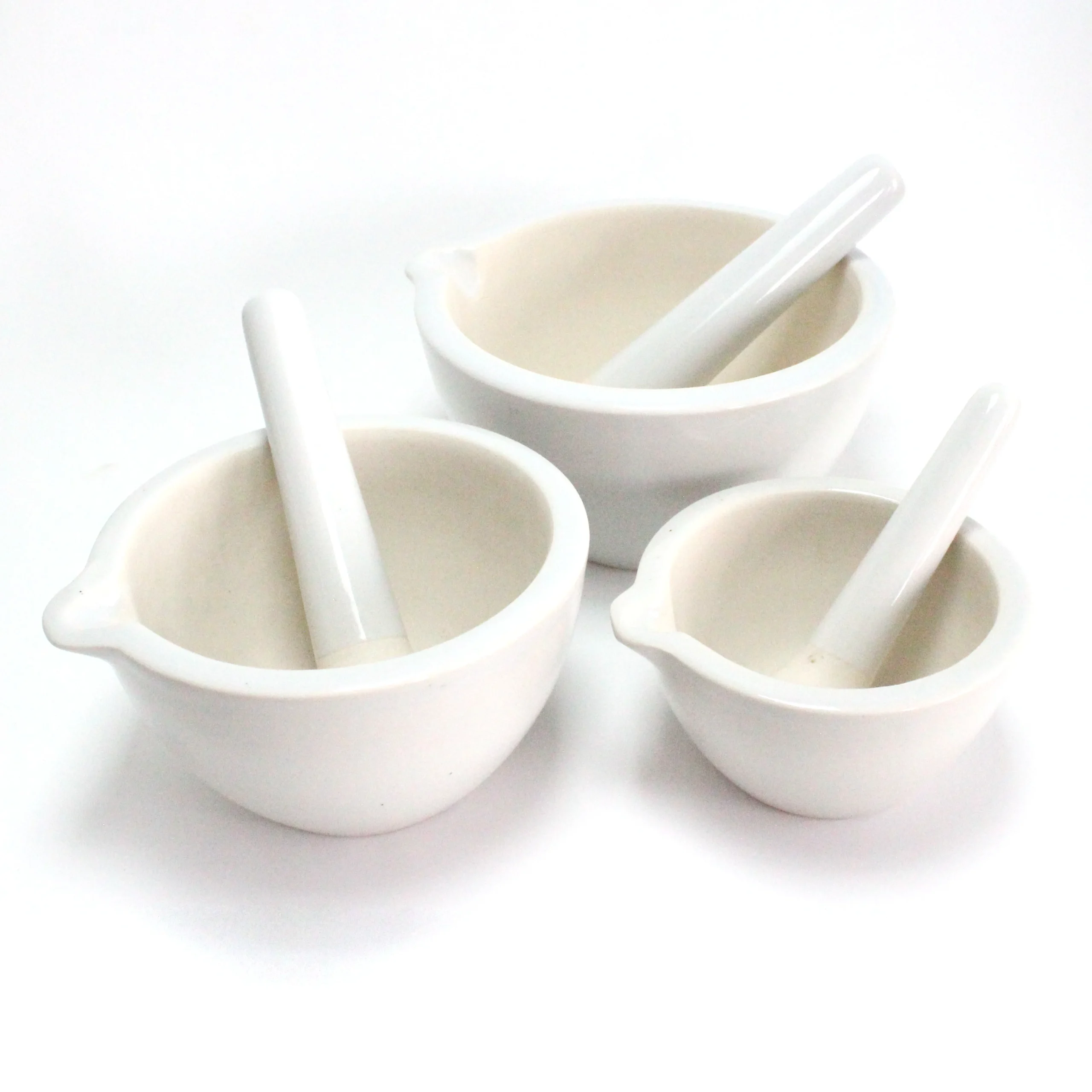 La porcelaine est un matériau courant pour les mortiers et les pilons en raison de sa grande résistance à la corrosion chimique et de sa capacité à supporter des températures élevées. Le mortier et les pilons sont couramment utilisés en chimie, en pharmacie et dans d’autres applications de laboratoire où le broyage, le concassage et le mélange de substances solides sont nécessaires.