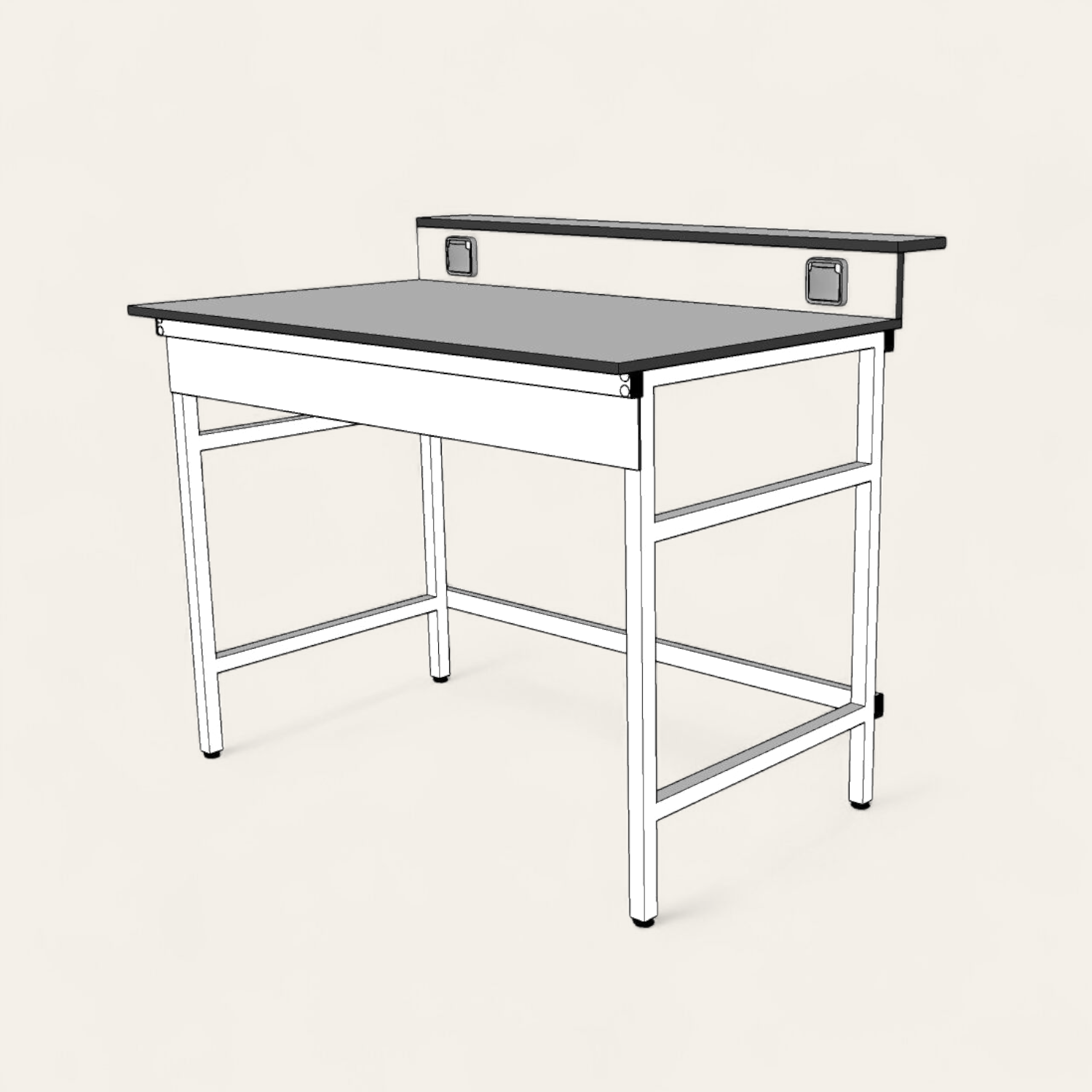 Chassie modulaire robuste en tube d’acier de 30*30 mm, piétement à vérin de mise à niveau, peinture époxy RAL Blanc, plan de travail en HPL 16 mm Garantie 10ans ,anti acide ,anti rayure , anti bacterien, anti statique, avec 2 prise de courant 16A étanche IP44 de marque LEGRAND.